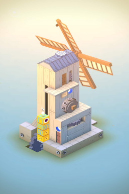 五、当风车未遮挡传送门时,进入楼梯上的传送门就能抵达新场景。这一环节难度同样不高,首先转动机关让艾达移动到墙壁内侧,如此便能踩下第一个机关。待新机关升起后,操控艾达走到对应位置,就能踩下第二个机关了。