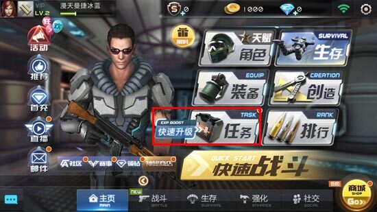 1. 在游戏主界面,点击图中所示的【任务】图标,即可进入游戏设置界面。