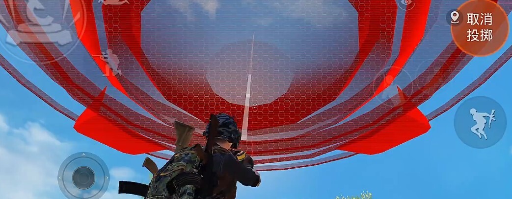 点击“推出”,玩家就能背着降落伞从直升机上跳下;点击“投放”,则可以扔出空投,之后大家在降落带投掷的位置就能获取空投了。总的来说,这是个挺有意思的模式,当然也可以把它理解成新增了一种交通工具。