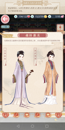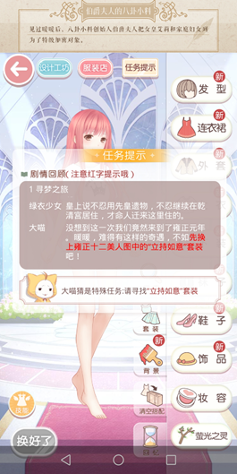 本关卡的任务是【换上雍正十二美人图中的“立持如意”套装】,此套装可在【御苑琼芳】主页【锦绣罗衣】处购买,只需要花费金币和少量钻石即可获得全套套装。