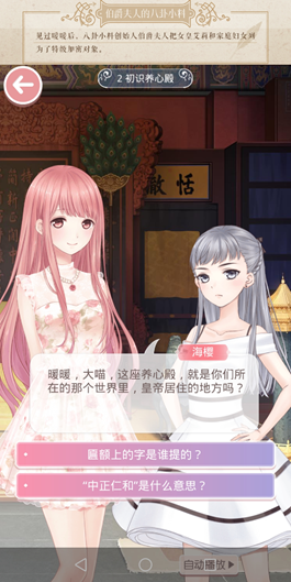 本轮关卡是剧情选择向,可供选择的选项有【匾额上的字是谁提的?】和【“中正仁和”是什么意思?】,玩家选择自己想问的问题,不影响后续奖励获得。