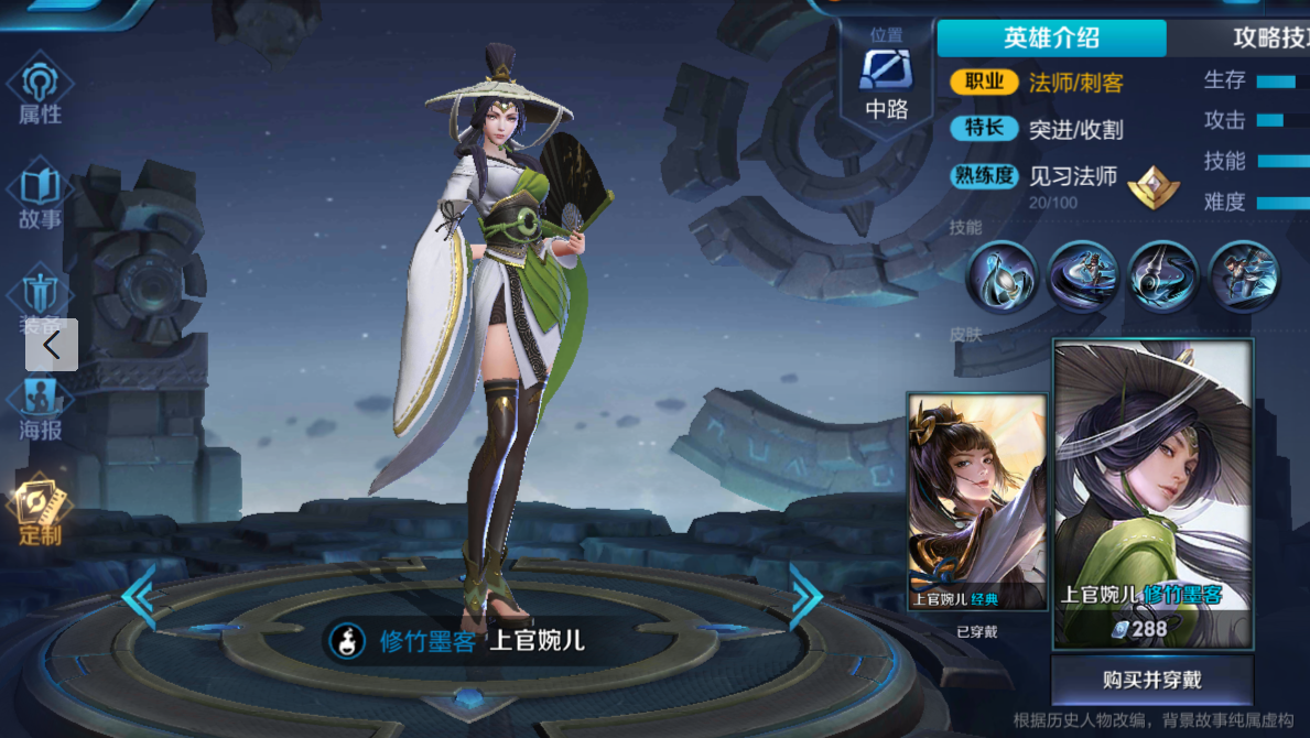 婉儿作为法师英雄,不适合第一时间进场。可以先用一二技能消耗敌人血量,等队友先手开团后,观察敌人的控制和伤害技能释放得差不多了,再飞上去收割战场。