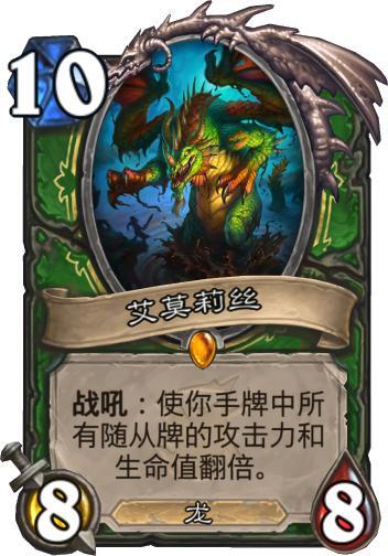 提到猎人的龙牌,那肯定得说我们的恐龙大师艾莫莉丝了。要是下版本有机会组出宇宙龙猎,艾莫莉丝大概率能进构筑,能给猎人卡组的强度带来一定提升。