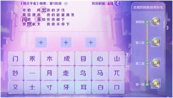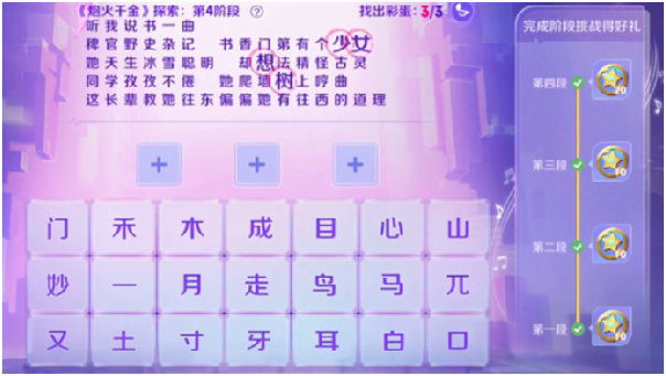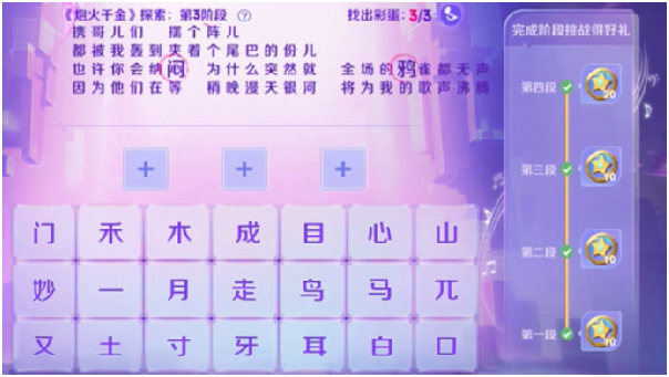 ②每段歌词里都藏有3到4个文字彩蛋,只要把该段落的所有彩蛋文字都拼组正确,就能顺利通过这一关卡。