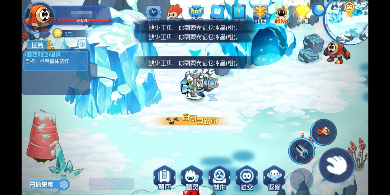 (5)粉色记忆冰晶:在地图右上角处,把三菱柱放置到对应位置来融化冰块,就能获取粉色记忆冰晶了。