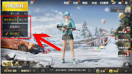 首先进入游戏主界面,更改游戏模式为娱乐模式