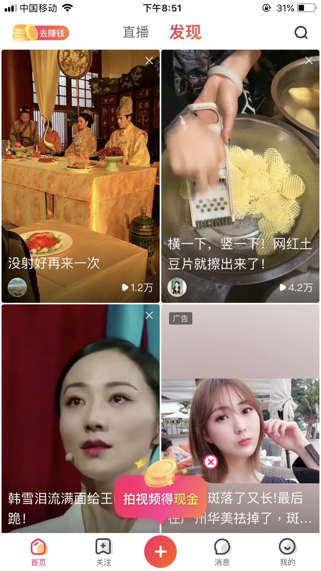 用户能够浏览系统推荐的大量小视频与直播内容。该系统会依据用户的观看偏好,推送风格相近的视频。小视频涵盖了拍片现场花絮、明星活动、美食DIY等多种丰富的类型。