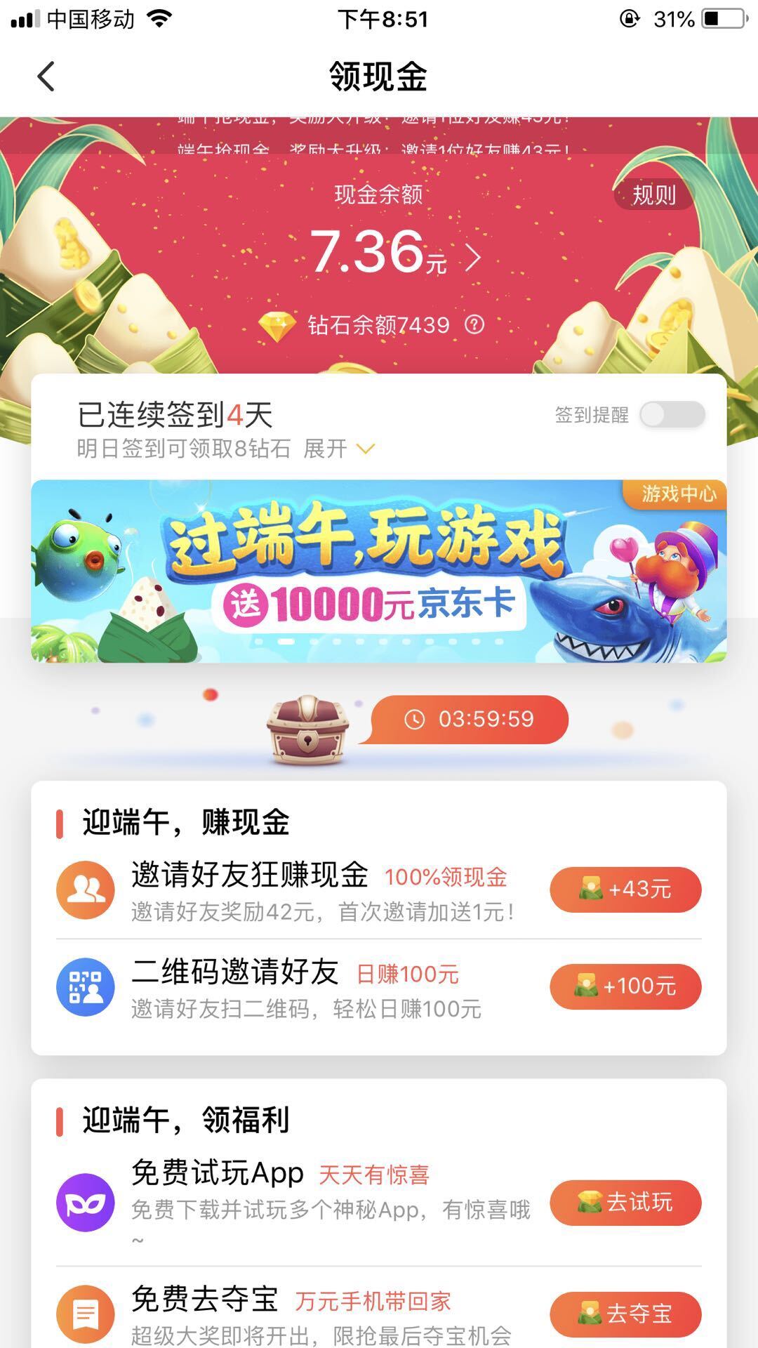 用户可以通过三种形式在app里赚钱: