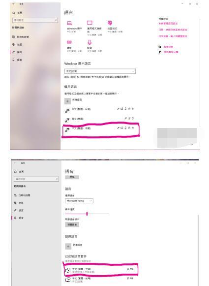 4. 将最下方的语言和语音都需下载为中国简体中文。若未下载美国键盘的英文语音包,则无需调整顺序;若已下载,需将简体中文移至首位。