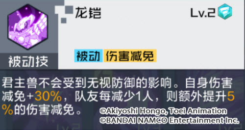 技能解析:自身免疫无视防御效果,同时拥有一定的伤害减免能力;我方存活队员数量越少,该伤害减免能力的提升幅度就越大。
