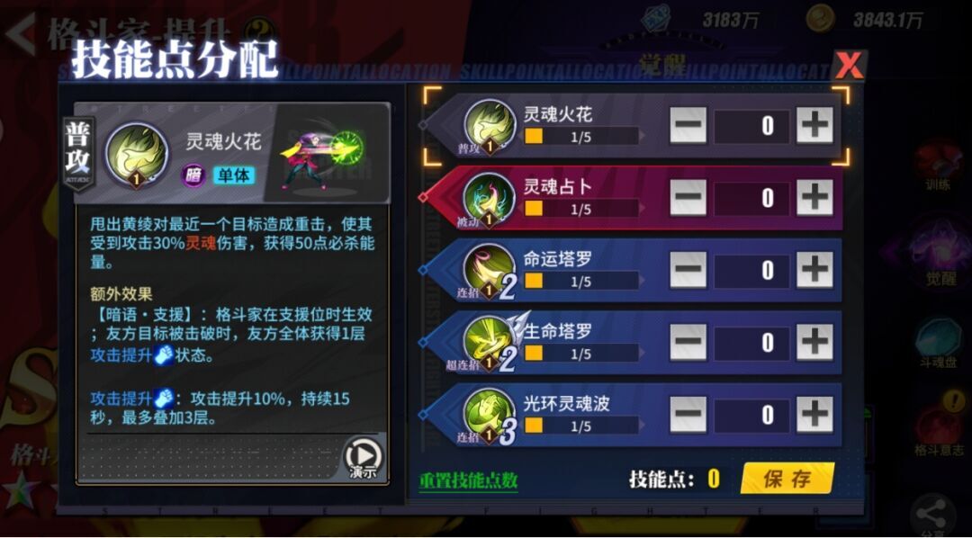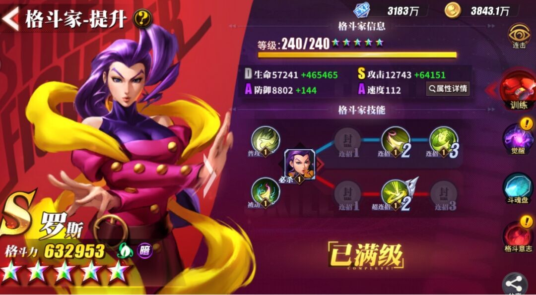 罗斯的被动技能是她的核心所在,也是最鲜明的特点——凭借被动为己方施加增益效果,既能显著提升友军的战斗能力,又能削弱敌方的战力输出,这正是她被誉为“全面辅助”的关键,因此必须优先将其点满。另外,考虑到超必杀的触发条件较为严格(暗属性格斗家整体数量不多,获取起来难度较大),所以超连招可以作为第二优先加点的技能,它能为队友带来多方面的增益加成。