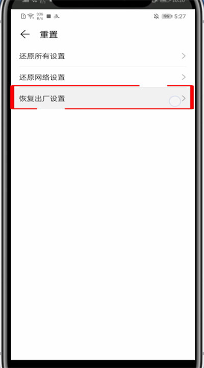 4、挑选重置方式,这里以恢复出厂设置为例,点击进入该选项