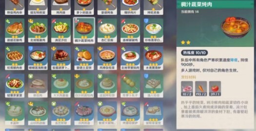 要是决定做几道热菜,那这里得提交的就是“稠汁蔬菜炖肉”了,这道料理能起到缓解严寒积聚的作用,很适合这个任务。