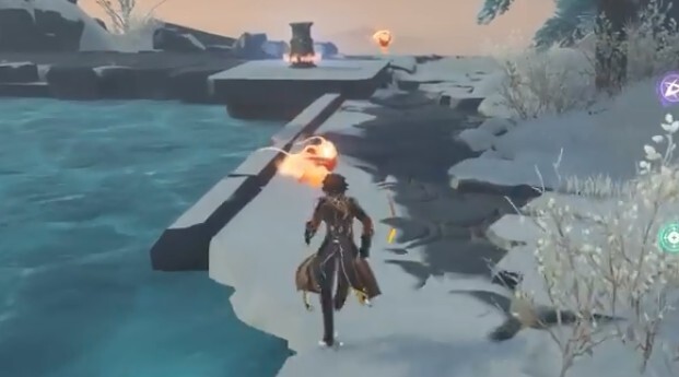 如果打算找个热源,这里使用放热瓶道具、火属性技能以及深赤之石buff都是错误的,正确的操作是在NPC附近会刷新出一个温暖仙灵,爬到高处找到它后带到NPC身边就行。