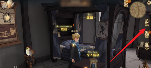 在哈利波特魔法觉醒游戏页面的右侧区域,找到并点击“活动”图标。