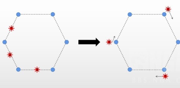 1、在游戏里能看到机关的分布位置呈现出六边形的形态,我们需要让三个仙灵以三角形的方式进行分布。