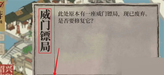 威门镖局的修复所需材料包括:“镖车”、“镖旗”以及“武林秘籍”。