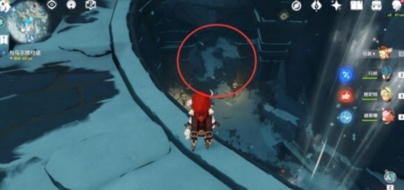 位置:先前往雪葬之都·旧宫的七天神像处,抵达神像后转身,下方标记的地方有一个山洞。