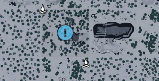 4. 先处理营地南边的鹿和野猪,兔子要是实在难打可以暂时放过。鹿的警惕性高,离太近就会跑,所以当你走到石头附近的距离时,就丢出眩晕道具把它控住,然后上前砍两刀。这时候它会开始逃窜,你别急着追,等它跑出视野范围后,再顺着它逃跑的方向去追。等看到它停下来不跑了,就再次丢眩晕道具控住,接着砍两刀,重复这个过程就能把它击杀。鹿被击杀后肯定会掉落2块肉,还有可能获得骨头、皮和韧带。骨头可以用来制作实用的武器长矛,皮建议留存起来。