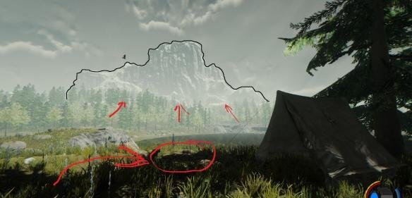 要是没办法借助地图找到图中所示的这个地点,我们可以依据山和营帐的位置,来确定位于它们中间的洞穴的具体方位。