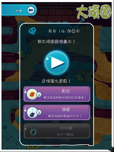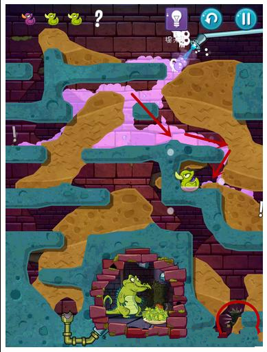 过关要求:要收集3只绿鸭,还要帮大顽固拿到毒水!