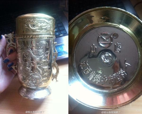 刷到那么多晒奢侈品的,我一直憋着没晒,就怕我的宝贝被比下去——这可是我家的传家宝九龙献瑞保温杯!通体24K纯金,那亮闪闪的金色杯身,晃得我眼睛都快睁不开了!年份就不细说了,懂行的都知道,古代能用上九龙纹饰的能是一般人家吗?再瞧瞧这杯底的落款,多有排面!