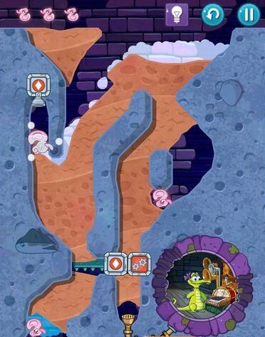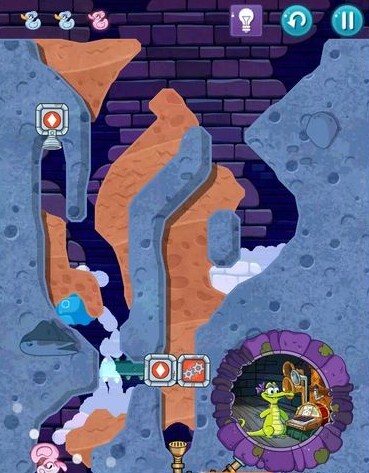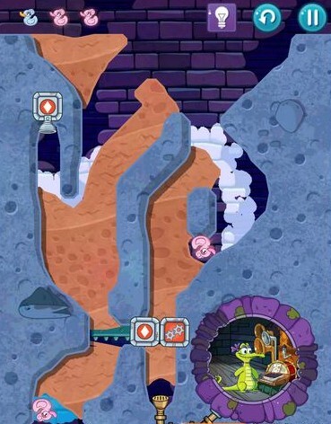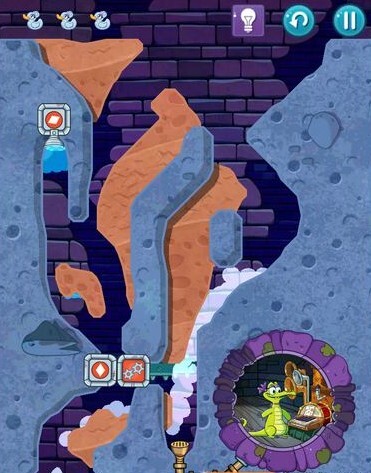 1、收集第一只鸭子时,在水蒸气聚集处的左侧划开一道小口,让少量水蒸气流出,这样就能激活粉色鸭子了。