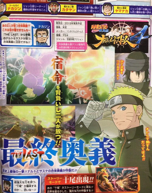 《火影忍者疾风传:究极忍者风暴4》拥有次世代水准的画面呈现,战斗场景更具电影质感,不仅收录了最新剧场版的相关内容,还新增了爆衣系统,计划于2015年在Xbox One、PS4以及PC平台上线。