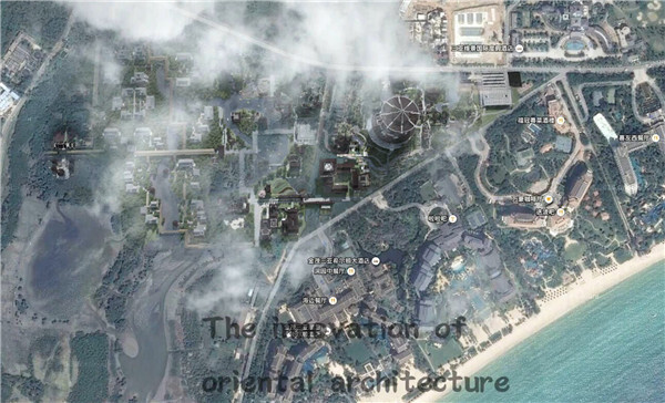 据该项目制作组的介绍,此项目在环境层面结合了三亚的现实地形,建筑设计方面参考了现实中的设计原理,同时汲取了中国传统文化的元素,借助可行的科技手段,突破中国古典建筑在结构与材料上的限制,为度假创造新的可能。