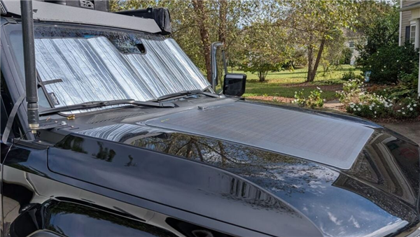 除此之外,他还配了定制的汽车引擎盖Lesun太阳能电池板,可以支持65W的充电,不适用的时候就给前面的储能系统充电。