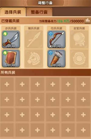 9、军备营涵盖军备研究与军备生产两大模块。其中,军备生产模块负责兵装的生产与升级,以及资源、加速道具、璞玉、琢玉刀等各类物资的产出。而军备研究等级的提升,则需消耗金沙来升级器械等级,这一提升将带来多重收益:不仅能增加生产队列数量,还可优化军备生产中兵装的产出效果,同时提升所生产物品的品质与属性。