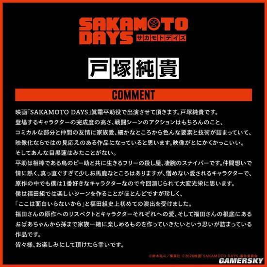 户冢纯贵称,能参与此次演出他感到十分荣幸。由于自己原本就有追《坂本日常》这部作品,而他第一喜欢的角色恰好就是真霜平助,这一点让他格外开心。