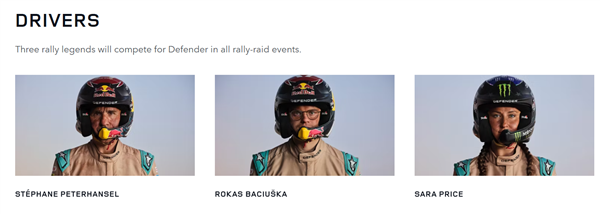 此次参与的路虎卫士赛车共有三辆,它们的车身编号依次为500号、502号与504号,并且每辆赛车都配备了一名车手和一名领航员。
