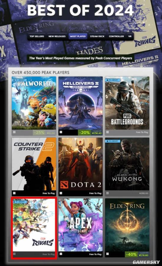 游戏的在线峰值人数不断刷新,每天数十万人在游戏中激战,让其稳坐Steam在线人数榜前三的交椅。并且随着热度不断膨胀,越来越多的玩家涌入游戏中,《漫威争锋》的惊人表现,让其在发售不到20天后,以同时在线人数超45万的瞩目成绩,位列“Steam年度最热玩游戏铂金榜”。