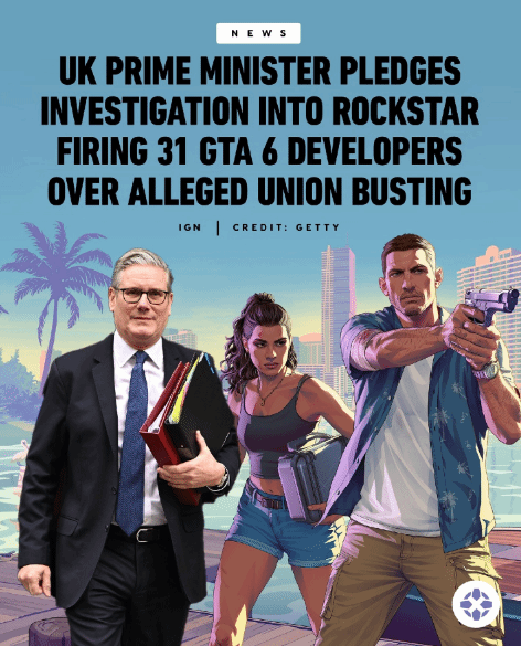 此前有报道称,英国首相基尔·斯塔默就开发商Rockstar Games解雇31名《GTA6》员工这一引发争议的事件发表了看法,他指出这是“令人深感忧虑”的情况,并承诺政府相关部长会对此事进行调查。