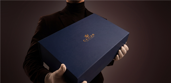 礼盒的整体包装沿用了Caviar标志性的深蓝色调,表面带有纹理,设计上显得厚重。
