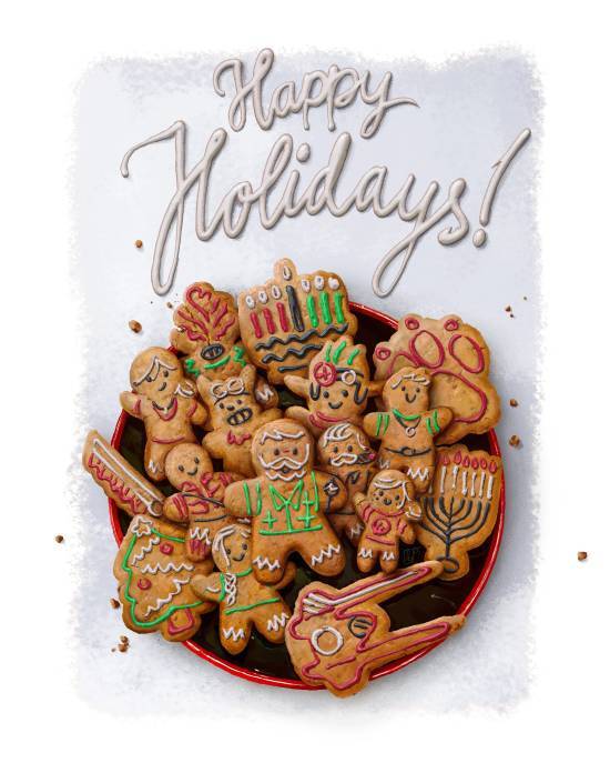 这段文本可以修改为:由顽皮狗概念设计师David Blatt创作的配图中,《最后生还者》的乔尔与艾莉、《神秘海域》的德雷克以及《星际:异端先知》的乔丹等人,都化身成了甜蜜诱人的姜饼人形象,令人垂涎欲滴。