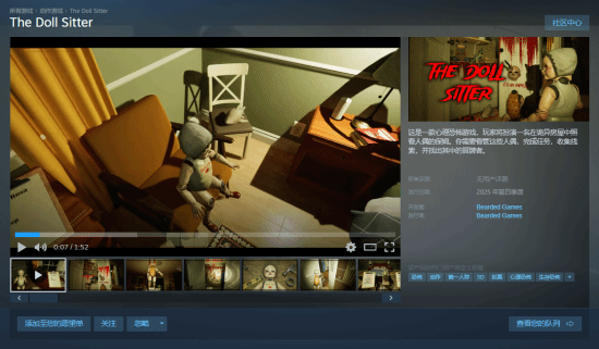由Bearded Games开发的第一人称心理恐怖游戏《The Doll Sitter》已在Steam商店页面上线,计划于2025年第四季度正式发布。