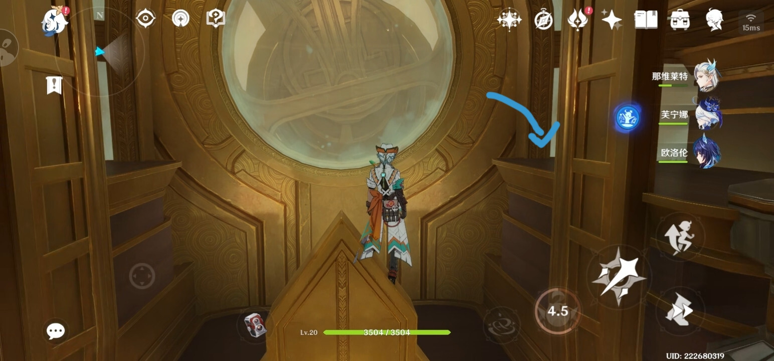 前往那维莱特的椅子所在位置,注意不是下方的谕示裁定枢机,目的地是景点一的那维莱特椅子处。