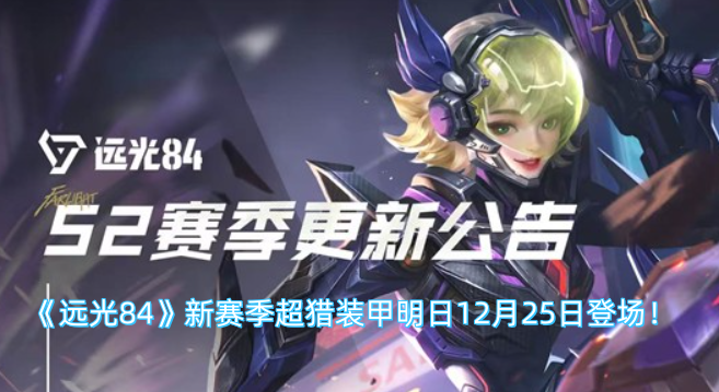 《远光84》官方正式宣布,全新赛季“超猎装甲”将于12月25日08:00正式开启,届时游戏将暂停匹配并进行维护。本次更新将为玩家们带来丰厚奖励与全新武器!感兴趣的玩家快来查看以下资讯内容吧!