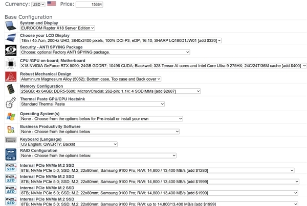 12月24日消息,向来以打造“怪兽级”笔记本闻名的Eurocom,又推出了一款名为Raptor X18的新品,其硬件配置堪称疯狂堆砌,售价更是高到离谱。