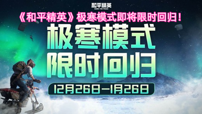 《和平精英》官方今日正式宣布,高人气限时玩法极寒模式确认回归!此次回归时间为12月26日8:00至1月26日24:00。期待已久的玩家们终于又能体验这一经典模式了!下面是小编整理的详细信息,一起来看看本次更新都有哪些新内容吧!
