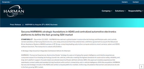 但这项交易需经相关监管机构审批,预计将在2026年下半年完成,而哈曼集团的背后则是另一个电子巨头——三星。