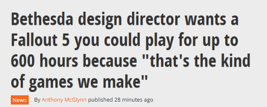 你觉得《辐射5》真的需要做到“能玩600小时”吗,或者说是不是应该先把质量打磨好?