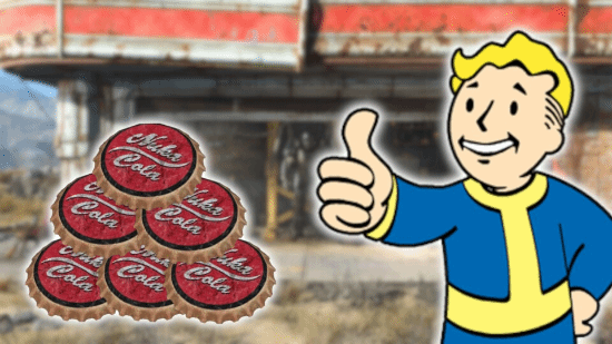 核战爆发前,核子可乐曾是全美国最风靡的无酒精饮品——这也就意味着,当时市面上存在着数量惊人的瓶装核子可乐,以及配套的瓶盖。不少瓶子在战争中竟奇迹般地完好留存,使得废土之上不仅有大量核子可乐在流通,瓶盖也随处可寻。不过关键之处在于:瓶盖的总数量始终受限于最初的存量,这种稀缺属性成功遏制了通货膨胀的发生。游戏的机制也巧妙地呼应了这一点:每当你喝下一瓶核子可乐,物品栏里就会自动多出一个瓶盖。