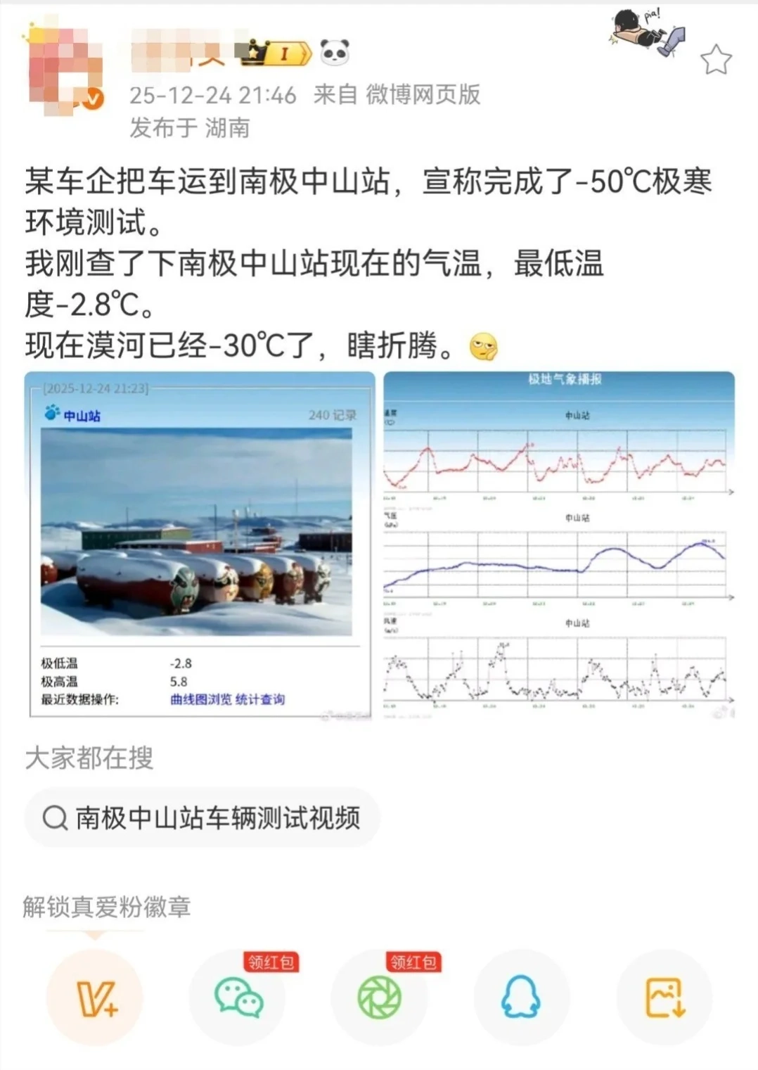 阿维塔的宣传文案引发了网友的质疑。原因在于,阿维塔12抵达南极时,南半球正处于夏季(12月),中山站当时的实测气温仅约-1℃,而同一时期北京的气温为-6℃,实际温度甚至比北京还要暖和,宣传中的温度与实际温度相差达50℃。