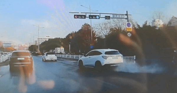 有位车友分享了自己上班途中的行车记录仪画面,称当时看到一辆悬挂绿牌的电动车尾部冒出黑烟,误以为车辆发生火情,便立刻驱车追上,提醒车主“你的车电池在冒烟”。