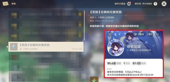 原神官方在哔哩哔哩元旦晚会期间公布了哥伦比娅「月光的赐福」兑换码,玩家在有效期内前往游戏兑换就能领取原石奖励。目前部分玩家还不清楚这个兑换码的具体内容,接下来笔者会为大家带来详细的兑换码信息,还不了解的玩家快来看看吧。