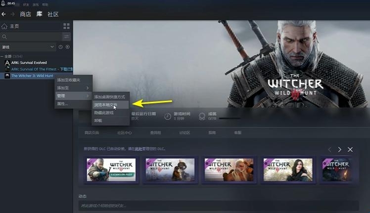 1. 打开Steam客户端,找到《巫师3》游戏,右键点击后选择“属性”,再点击“浏览文件”;