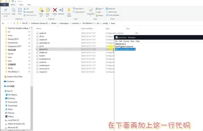3. 找到名为“general.ini”的文件,右键点击该文件并选择用记事本打开,随后在文件的末尾添加一行内容:DBGConsoleOn=true